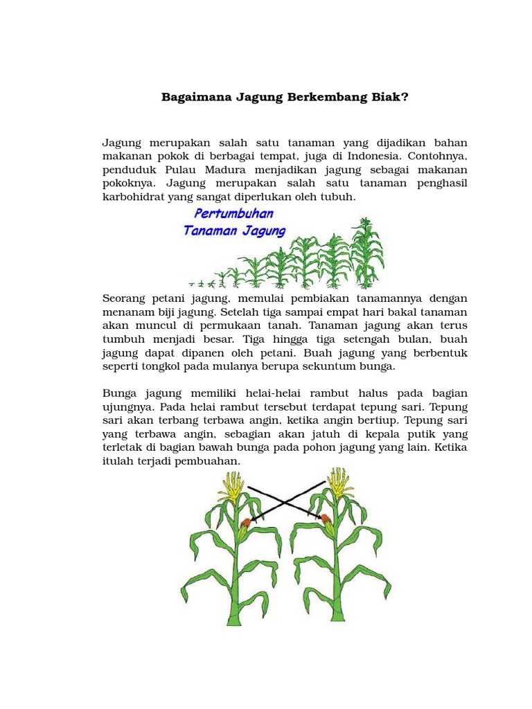 Ketinggian tangkai tergantung pada jenis jagung dan lingkungan di mana tanaman jagung ditanam. Perkembangbiakan tumbuhan secara generatif terjadi melalui. 2 4 jenis penyerbukan berdasarkan asal serbuknya. Peserta didik diminta mengamati teks tentang perkembangbiakan jagung melalui tayangan power point via zoom. Contoh bunga betina adalah tongkol jagung.